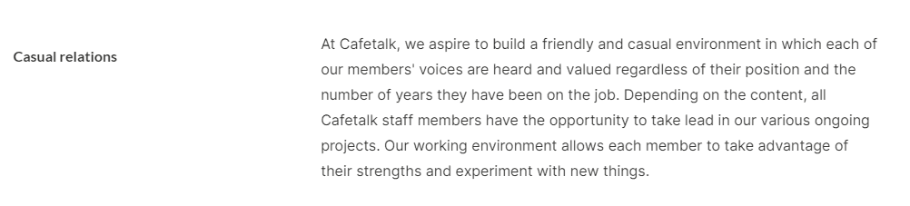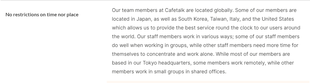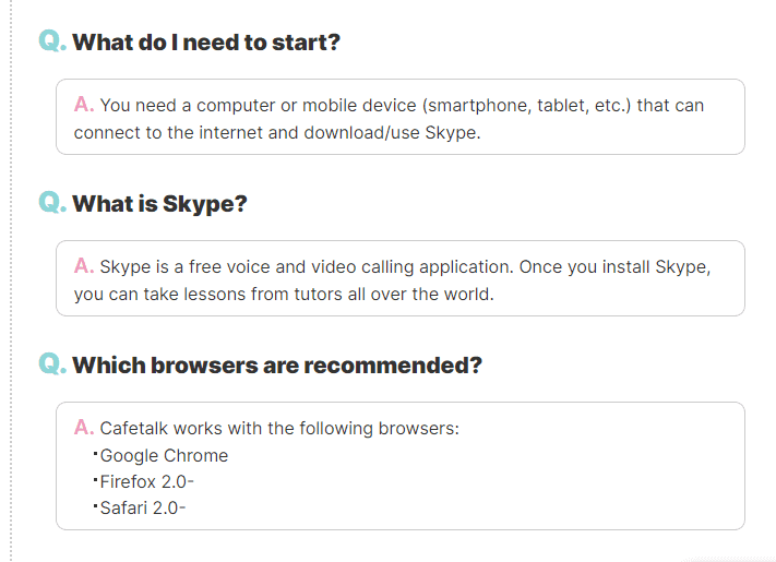 Based on the literature on its website as well as independent reviews from teachers who have experience working with Cafetalk, the company makes a strong commitment to creating a casual, pressure-free learning environment where both learners and teachers thrive.