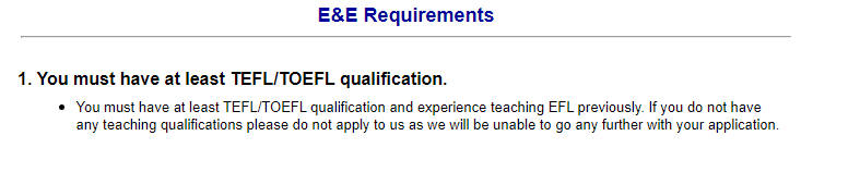 Do applicants need a TEFL Certificate to qualify for EnglishEverywhere?