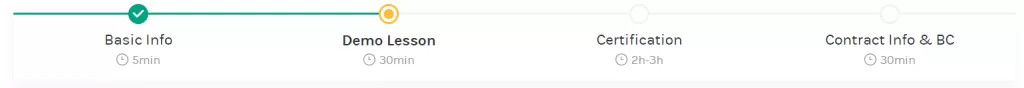 In the “live demo” lesson, you’ll schedule a time to speak with a real person (a recruiter) who will go over your background, interest in the company, etc. before undergoing a 10-minute demo lesson in which the recruiter assumes the role of a young learner.