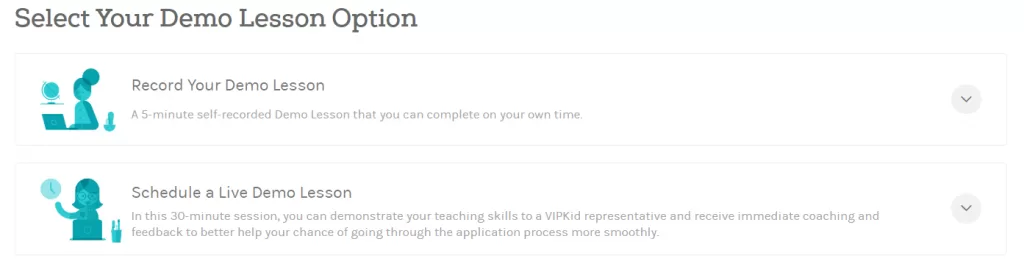 So, if you qualify for VIPKid, the next step following the submission of your relevant info is to select your demo lesson option based on two choices of format: the “smart’ and “live” options.
