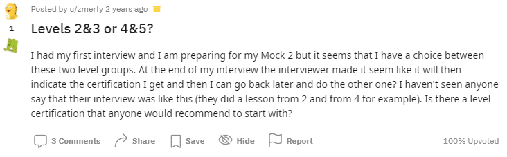 The “mock lesson” occurs later in later on, after you’ve already passed the demo lesson, the purpose of which being to determine your certification level (either Level 2&3 or Level 4&5)