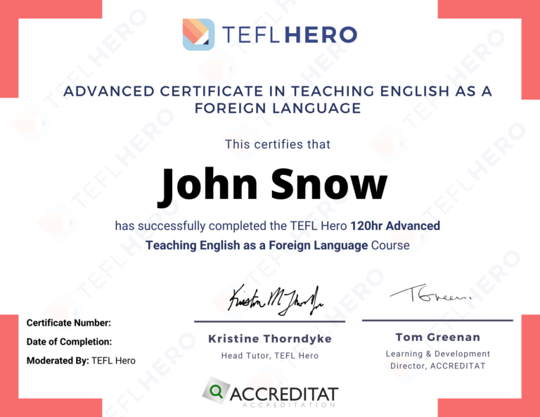 Once you pass your final examination, you will receive a digital copy of your TEFL certificate immediately. From there, you may print out your TEFL certificate from anywhere in the world! For a more formal touch, we recommend printing onto a quality cardstock paper.